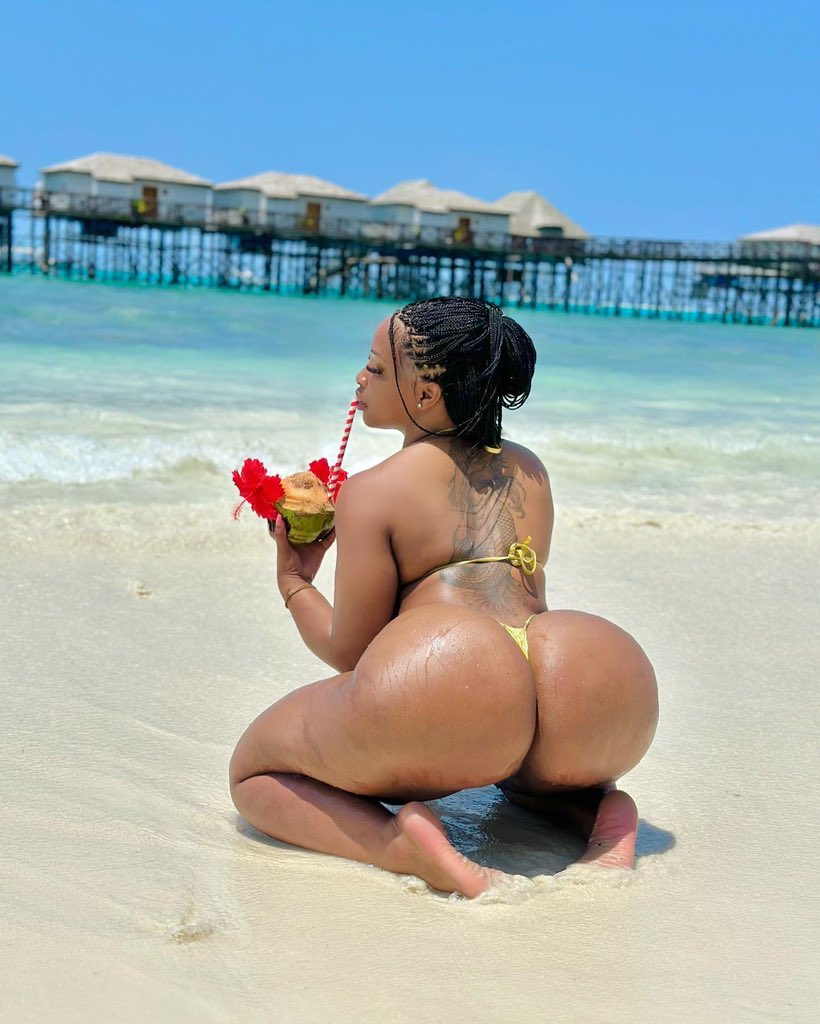 Cindy Makhathini displays her BOOTY. Cindy Makhathini is a social media influencer and socialite in mzansi and has been showing off her big booty while on vacation.
