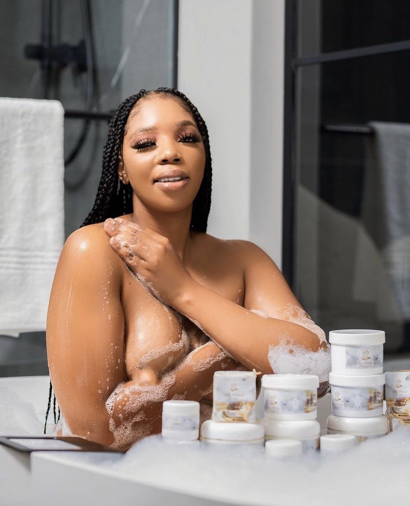 Lulu Menziwa shows off new products naked. Take a look at her new body prodcts with her soapy body
