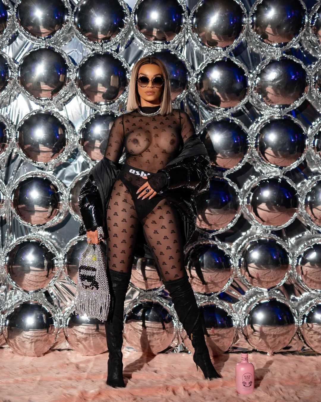 Pearl Thusi says Happy Sunday in sheer outfit. It seems like it’s a trend now for Pearl as she advertises her Black rose pink Gin
