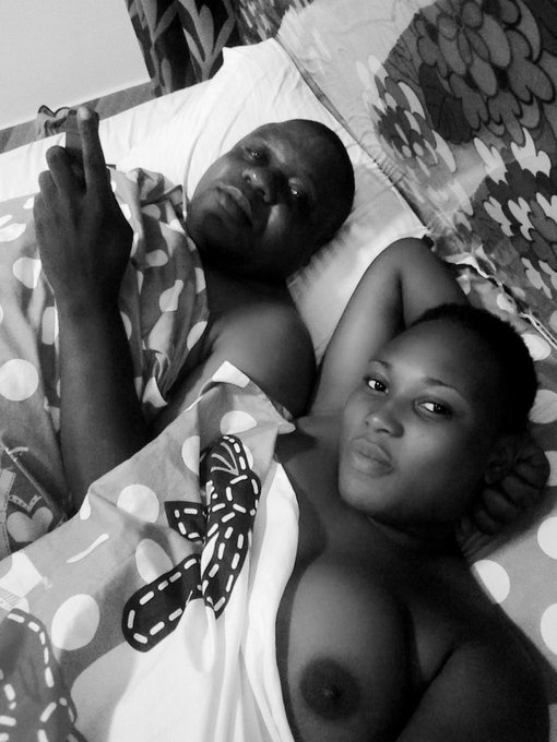 #TittyTuesday with Mai Denzel. Zim couple who shared their naked pictures on social media showing off her tits while hubby sleeps on the side.