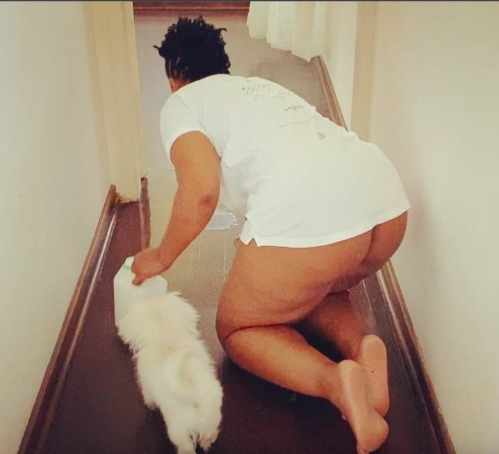 Her Instagram post shared on Sunday, 24 May 2020, showed her on her hands and knees, as she scrubbed her floors. The video, captioned, “My Sunday …Cleaning the house this is me Zodwa Wabantu.”, would suggest it a simple cleaning tutorial, but no… not with Miss Libram!